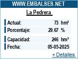 El Embalse de la Pedrera ha aumentado su reserva en 1 hm3 con respecto a la semana pasada. Actualmente el agua embalsada es de 103 hm3 con un porcentaje de 41,87%. Esperemos que siga la misma tónica durante la próxima semana. Las lluvias que se esperan para el fin de semana podrían ayudar a dicho incremento.
